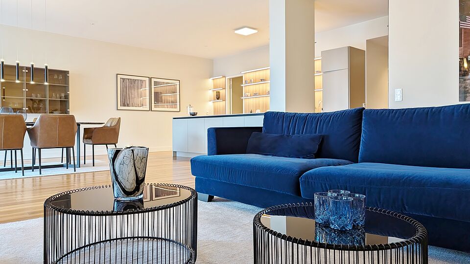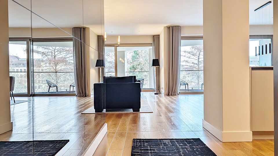 - Floor-to-ceiling windows with triple glazing and sun and heat protection – light-flooded rooms with optimal sound and heat insulation