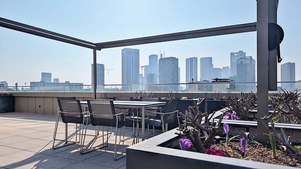 - Ca. 136 m² große, aufwendig gestaltete Dachterrasse mit 360°-Panorama- und Skylineblick