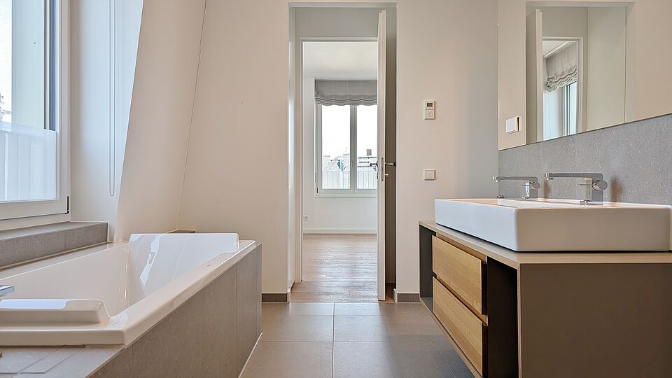 - Penthouse im 6. und 7. Obergeschoss mit Lift in einem außergewöhnlichen Mehrfamilienhaus mit Natursteinfassade