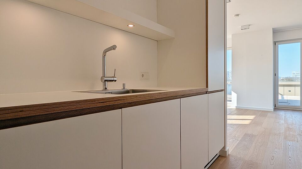 - Durchdachte Pantryküche im Obergeschoss für maximalen Komfort auf der Dachterrasse