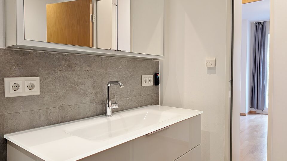- Designtes Badezimmer mit hochwertigen Materialien und klarer Formensprache