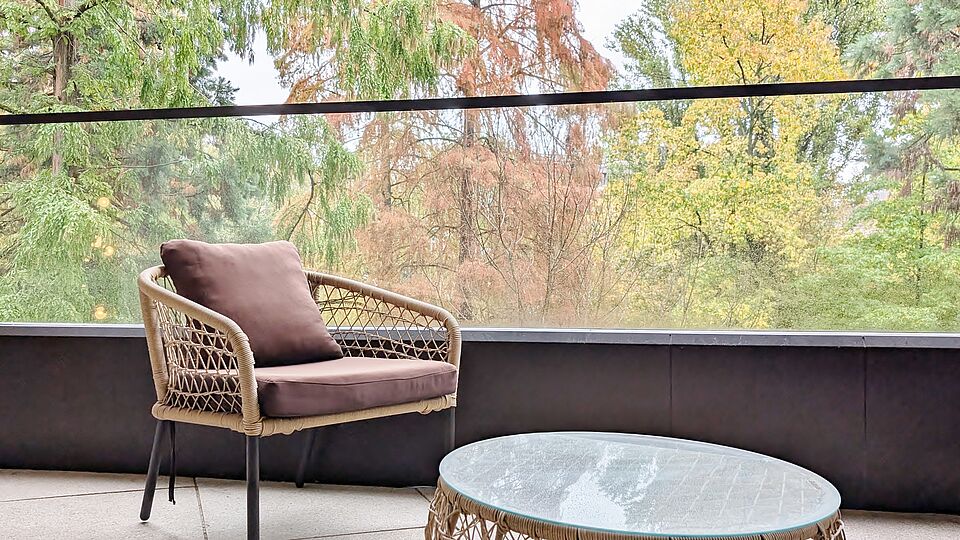 - Zwei Loggien mit Blick in den Park – ruhige Rückzugsorte im Freien mit harmonischem Ausblick ins Grüne