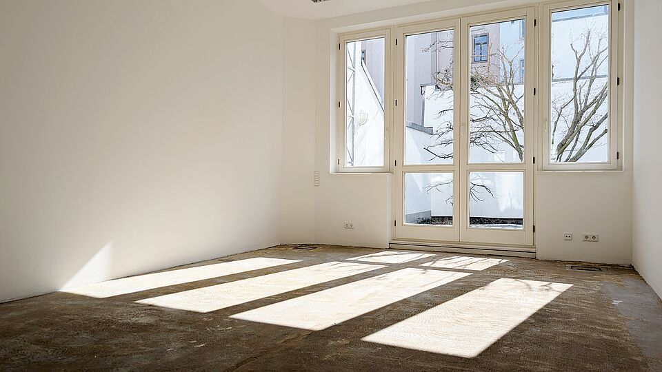 - Hohe Räume und bodentiefe Fenster sorgen für ein helles, offenes Raumgefühl