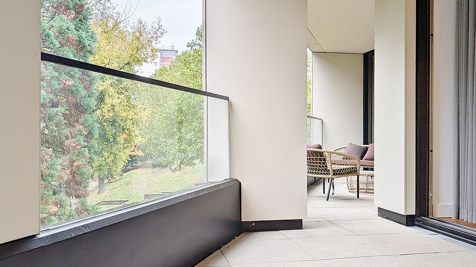 • Zwei Loggien mit Blick in den Park – ruhige Rückzugsorte im Freien mit harmonischem Ausblick ins Grüne