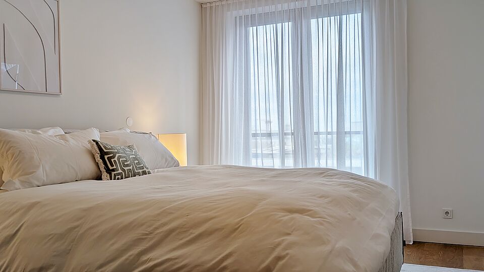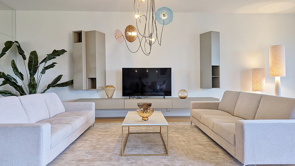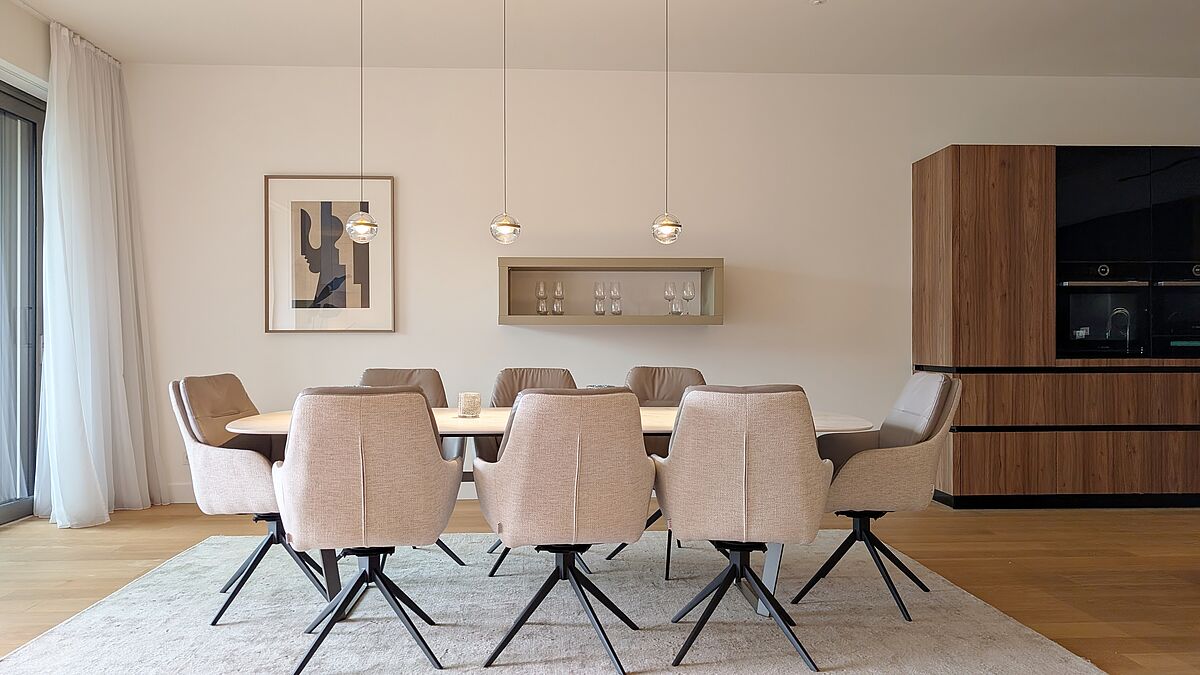 - Bodentiefe Fenster mit Dreifachverglasung sowie Sonnen- und Wärmeverglasung – lichtdurchflutete Räume bei optimalem Schall- und Wärmeschutz