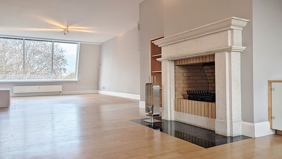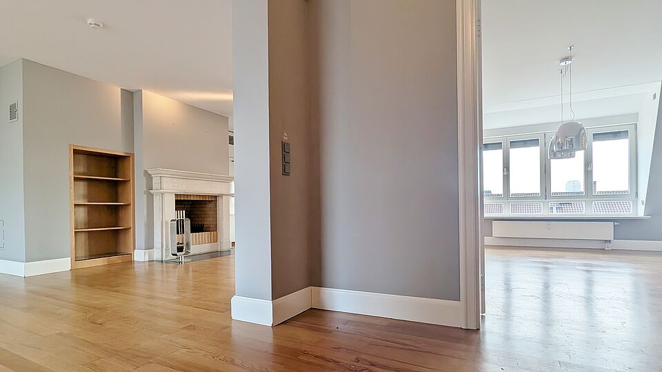 - Repräsentativer Wohnbereich im 5. Obergeschoss mit offenem Kamin und stilvoller Atmosphäre