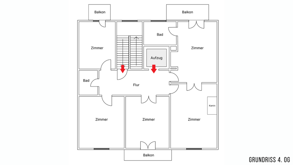 - Großzügiger Eingangsbereich im 4. Obergeschoss mit vier Zimmern und drei Balkonen