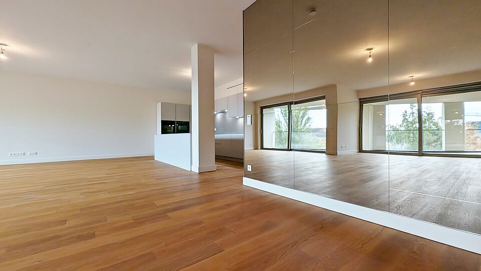 • Bodentiefe Fenster mit Dreifachverglasung sowie Sonnen- und Wärmeverglasung – lichtdurchflutete Räume bei optimalem Schall- und Wärmeschutz